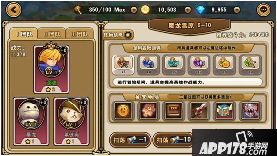 冒险关卡可掉落各种道具,首次通关还有丰厚奖励赠送。