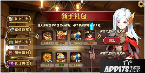 进入游戏每天可领取签到奖励,而且前七天每天可在礼包界面领取新手礼包,奖励多多,千万不要错过哟!