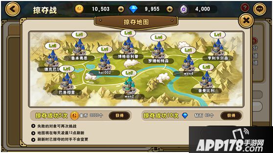 挑战掠夺关卡不消耗任何道具,但只能通关一次,通关后可获得大量资源和通用碎片。