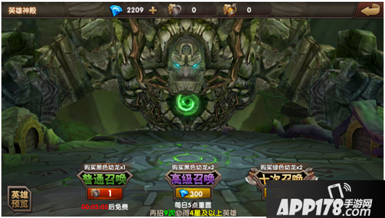 在通关普通战役1-1后,开启神殿功能。玩家可以花费钻石和麦酒,通过神殿招募到各种英雄,甚至是强力高星英雄。