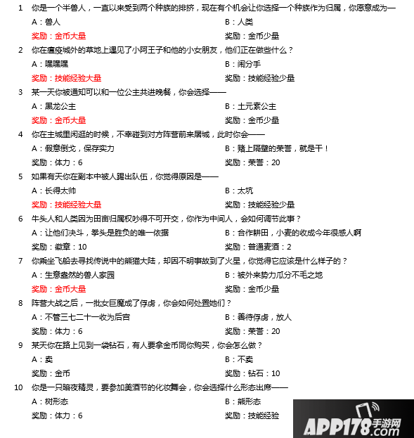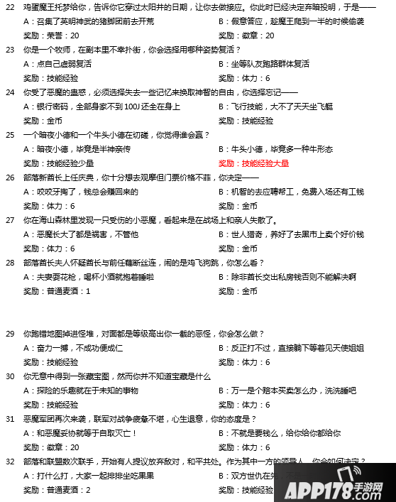 魔法学院每天可以免费答10题,很多事件并没有最佳的答案,因为奖励类型不同,可按照自己需要的奖励来选择。下面小编把魔法学院中的所有出现过的题目进行整理;具体如下:
