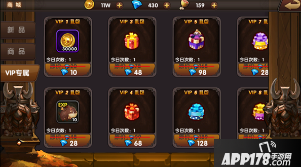 4、各种商店中出售的商品,有很多都需要使用钻石来购买,还有一些商品需要配合vip等级购买,没有达到相应的vip等级使用钻石也不能购买。所以适当充值是必不可少的。