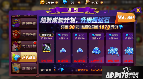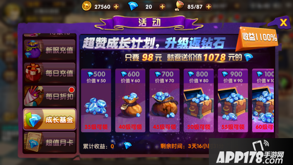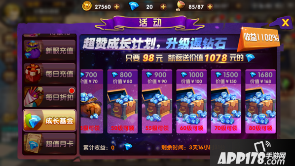 开服活动的成长基金,强烈建议玩家购买,性价比真的很高。