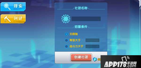社团创建流程如果各位店长大人们想要拥有自己的社团的话,也不必担心创建时的花费,只需要500钻就可以创建社团了哦。创建时,需要设置社团的名称和申请入社条件,名称的长度和过滤字规则与角色命名的规则保持一致,申请入社的条件需要设置为【无限制】【等级要求】【战力要求】三种其中之一,如果选择的是后两种需要填最低要求的数值。