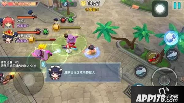 类似于闯关模式,地图较大,现版本主要有两种地图(街道开局和沙滩开局)。副本由三人合作完成,共需要击杀约5波敌人,即可通关。