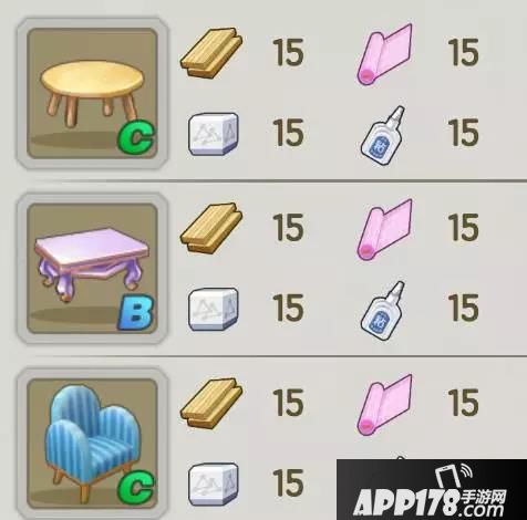 接下来将公式调整为:15.15.15.15,这个公式所需要的材料,每天都扫荡就能够合成几次的。并且伴随着材料的增加,家具种类也会变得丰富了,会出一些茶几、小沙发之类的家具。但是还是太小了!