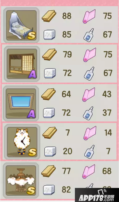 投入的材料较少,所能获得的物品基本上都是一些小的挂饰或者摆件,是不可能做出床、沙发之类大件家具的,而且所增加的分数也比较有限。