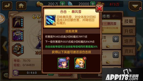 美女是一个可以使用冰霜法术对敌人进行杀伤的远程魔攻英雄,也是前期比较容易拿到的A+级英雄之一。作为一个拥有大范围群体伤害的法师,绝对是前期推图的首选。冰女的终极技能是暴风雪,一个可以杀伤全屏的AOE技能,并且可以降低所有敌人的移动速度,是一个兼具输出和控制的优秀大招。而合击技能更是能够降低对手魔抗。