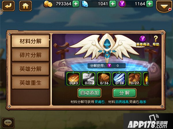 在我们平时的刷副本过程中,绝大多数玩家都会在中后期遇到初期材料无用武之地的情况。在这种情况下,我们就可以在材料分解模块中将多余的素材进行分解,以获得大量的英雄粉尘。