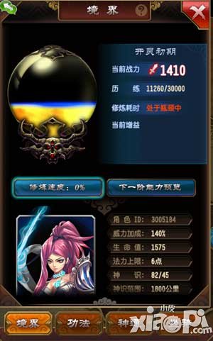 APP178玩家可以在境界系统中查看自己的当前战力、修炼速度以及浏览下一阶段的能力。