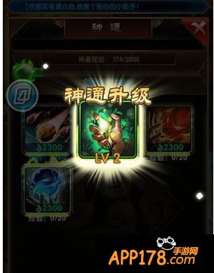 打怪可获得神通经验,在神通界面可将神通经验分配给神通,当满足条件时则神通升级。