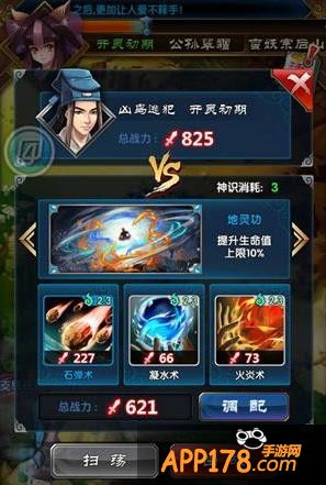 战斗开始前可以进行功法和神通的选择,每次战斗最多可以使用三个神通。