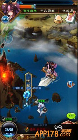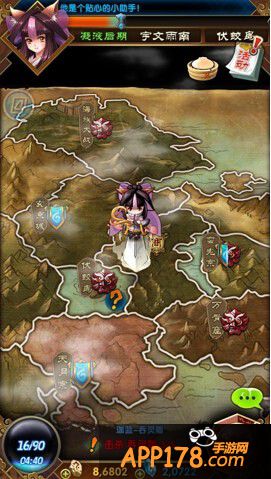 世界地图中略去了很多细节,只显示重要区域的标识,主要为宗门、副本和坊市。点击地图上任何一个地方即可开始移动。有蓝色宗门城镇提示的地区,完成相应任务之后可以使用灵石传送,以节省时间。