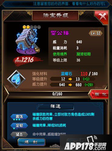 二、雷公锤支线完成以后,可以得到成品雷公锤,配合副本碎片,只要你有一定的材料,可以轻松炼制到2级,成为主力输出法宝。