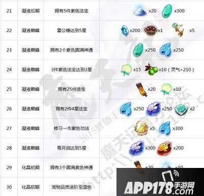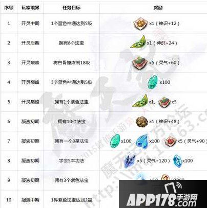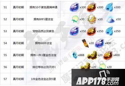 历程任务拥有两个条件限制,一个是境界一个是任务目标,境界不说,任务目标是比较难的,虽然有些比较简单,但是有些还是比较棘手的,比如排位打到金将,烈焰旗达到五星,青月剑达到五星,宠物进阶至蓝色和紫色,2件金色法宝等等,这些都是需要提前准备的,小编就是烈焰旗五星害苦了,之前都没去弄烈焰旗,后来五星的时候拼命攒了好几天才完成。