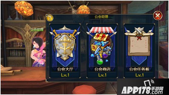 公会助理处可以利用公会点数升级公会等级。“公会大厅”升级可以增加人数上限以及“公会商店”与“公会任务版”的最大等级,所以需要优先升级公会大厅哟!