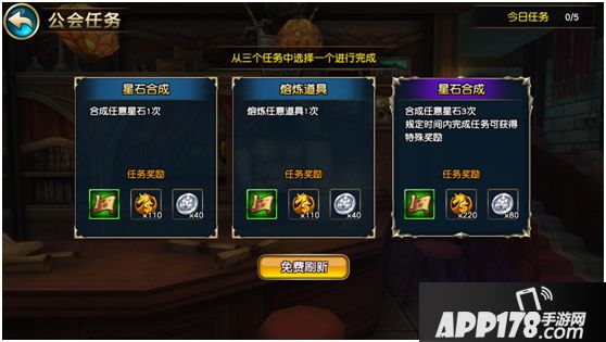 公会任务中,会随机刷新3个任务,可以自行选择进行完成。在限定时间内完成紫色的任务,还可以获得额外奖励哦!