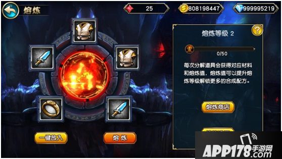 游戏中还有特色的熔炼系统,可以利用已经过时的,或者多余的装备,进行熔炼,来获得熔炼点数来交换其他装备,同时会提升熔炼等级,能解锁更多可以换取的装备。