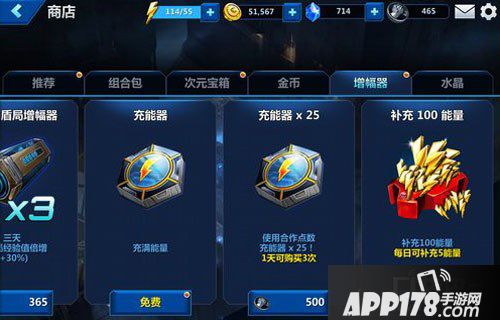 在商店中每天都可以免费使用一次充能器,使体力恢复满。也可以使用合作点数购买充能器,每天可以购买3次。另外水晶也可以购买能量,不过这个就不太推荐了。