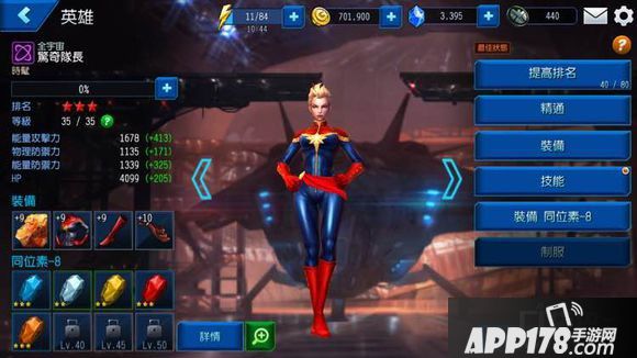 必练推荐理由:性价比最高的紫属性角色,而且到手便是三星。惊奇队长性价比最高是因为她的技能非常实用,尤其第三技能冲击波。这个技能PK能很好的克制黑寡妇(Blackwidow)。玩过一段时间你就会发现黑寡妇在PK中是非常BUG的存在,同星值的美队都无法打赢黑寡妇。因为黑寡妇的速度非常快,第二技能电击高攻还带持续减血。但是惊奇队长却可以很好的克制黑寡妇,她的冲击波持续伤害很高。