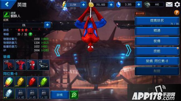 第一技能吊击在空中是无敌的,和猎鹰的俯冲有点像,可以让对方暂时失去目标。但是攻击力不高。三星技能一般,并没有什么出彩的地方。不过毕竟蜘蛛侠的粉丝很多,而且在某些特定关卡会用到他,但是好在碎片好刷,时空裂缝出场率也很高,如果喜欢可以练一个。