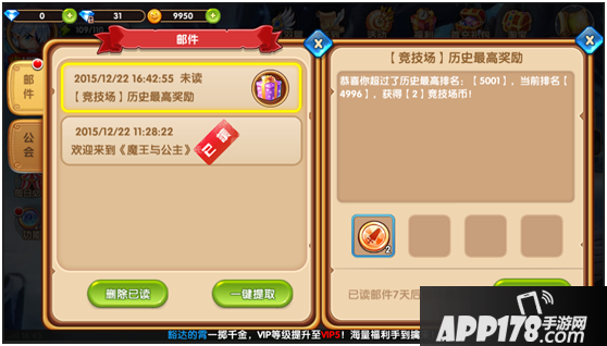 到达26级后,就可以开启风云榜啦。在风云榜中,云集了游戏中的各路英雄。选择你想PK的对象发起挑战,挑战成功就可以成功在排行榜上提升名次哦。名次越靠前,奖励越多。竞技场的奖励风云币会通过系统邮件发放到玩家的游戏账户中,记得提取哦~