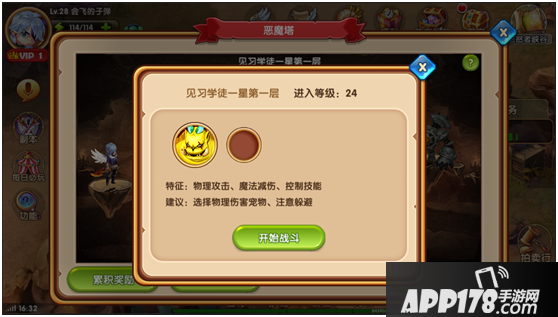 玩家等级达到24级就可以进入恶魔塔进行试练啦