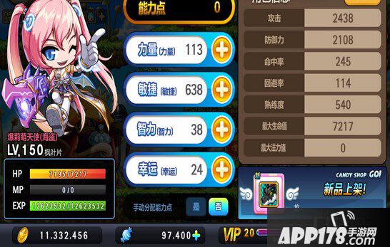 如图,150的天使是全敏加点,满级的防御是将近2000,至于为什么是2108,大家看到VIP等级了吗?而且还是有装备的加成。