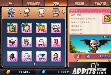 小龟龟:这只宠物就是坐骑了,可以提高角色的移动速度和跳跃高度,以及跳跃距离和增加20点的防御力。小龟龟的价格是15800个糖果。