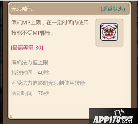 无限精气的技能类型是增益技能,也算是一个主动技能吧,毕竟需要手动释放。