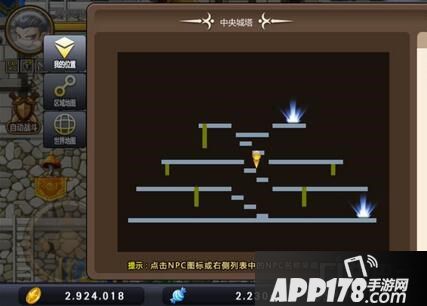 如图,大家可以看到小编是在“中央城塔”的这个位置选择全屏刷怪的。为什么会是这个位置呢?