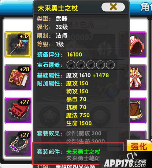 然后还有额外的套装。套装属性当然是最高的了,毋容置疑。