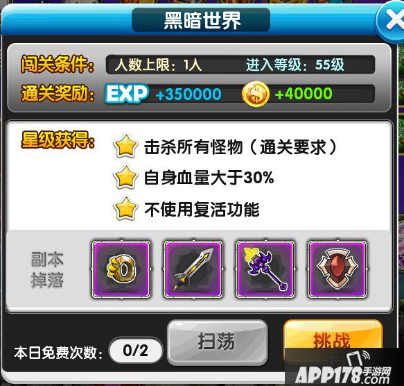 以上就是APP178手游小编为您带来的《冒险王2》野外副本进入等级 。更多精彩内容请继续关注APP178手游冒险王2专区。