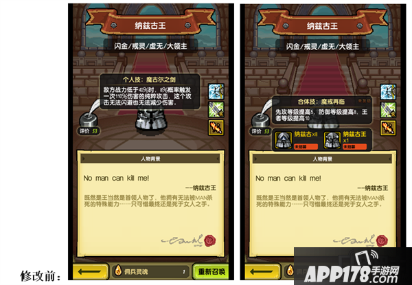 虽然距离封神还有一定的距离,但是纳兹古王的这轮改动已经很好地体现了官方让废柴变实用的决心,相信不少分解过纳兹古王的玩家已经蠢蠢欲动,希望大家能重新审视一下这名佣兵,看看是否能够对自己的阵容有着更好的帮助。最后也希望官方能继续用对之前的一些废柴佣兵加以优化,我们需要的并不是最强,而是每个佣兵都有自己的发挥空间。