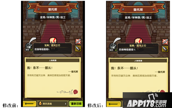 在上一轮的技能更新后,战神的二次进化已经来到!可能是玩家们还没有领悟到战神改版后的技能到底该怎么用,在本次的更新中奎托斯的宝具从9防御一下子升级到了12防御,不但突破了金卡的常规宝具数值上限,更是一跃成为了哈迪斯之后的防御宝具之王。可能有玩家要说了,12防宝具有什么卵用,我要堆属性难道不会用亚瑟吗。话是这么说,但是看看奎托斯的技能吧:12回合后50%几率一发300%的暴击,对于回复流来说又是一个改变打法的英雄。无论是面对纯粹还是暴击,在用回复将撑过前12回合后高几率发动的暴击能够有效削减对手的战力,作为曾经的金色四傻之一,不少玩家都有足够的灵魂重新招回奎托斯,战神的春天似乎已经来临。