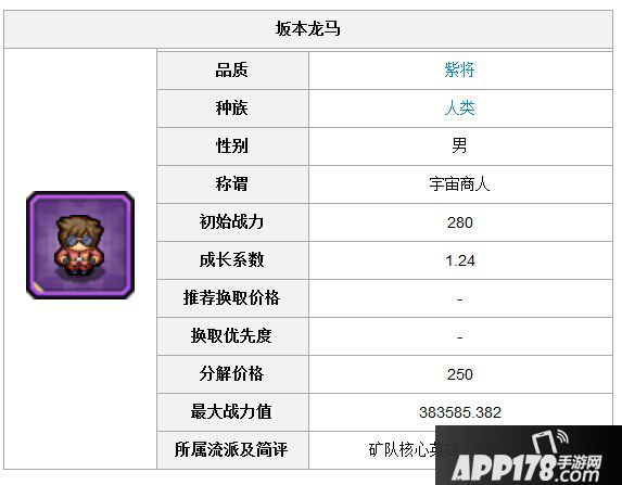 以上就是小编为大家带来的冒险与挖矿坂本龙马详解,玩家欲知更多游戏内的资讯与攻略,敬请关注APP178手游《冒险与挖矿》专区。