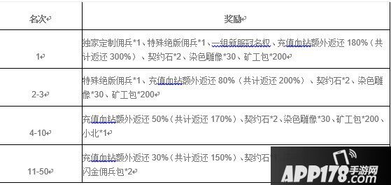 1、根据活动结束关服时的排名赛名次,可以获得如下额外奖励: