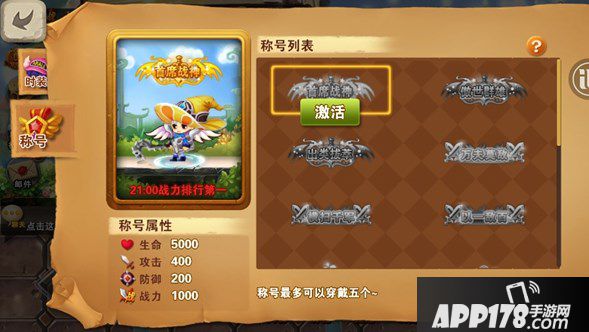 3. 称号最多可以穿戴5个,快秀出你的称号,hold住全场吧!