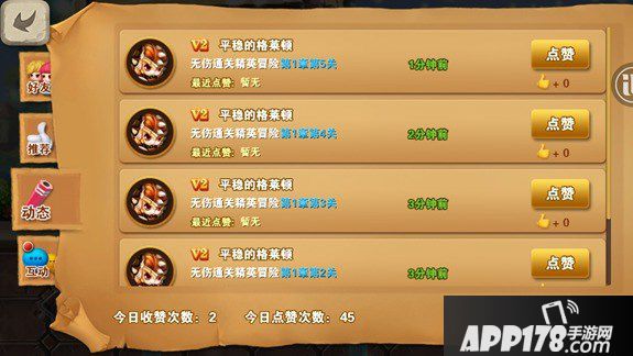 动态面板可以看见好友们的最新消息,还可以为好友的动态点赞,点赞还可以获得日常任务和成就任务的奖励!