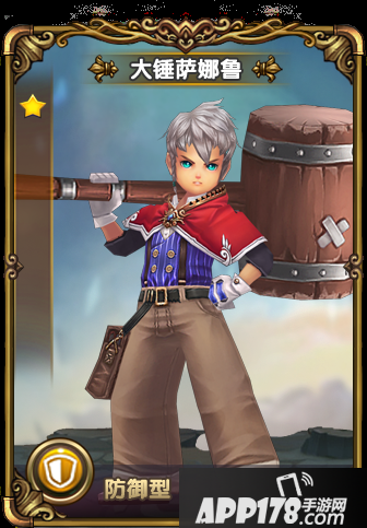 手握大锤的肉盾战士,熟练的运用大锤将敌人击退,保护后排的输出型英雄。
