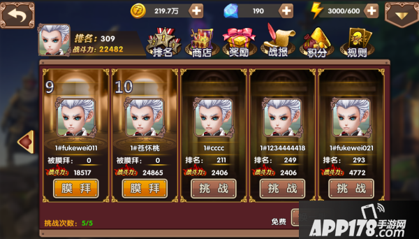 竞技场是pvp玩法,玩家挑战敌人,挑战成功后双方的名次互换,挑战失败后名次不变