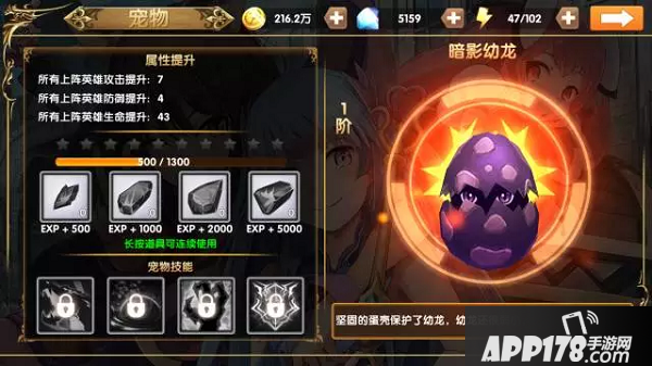 喂食宠物经验道具能够增加它的经验,当前经验全满之后就能够进行升星啦。宠物经验道具都能够在宠物秘境中获得,选择的秘境难度越高,所获得的材料也就越高级,秘境每日挑战次数是有限的,一定要每天都把次数用完,这样才能让龙宝宝好好成长呢!