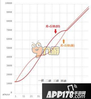 从ATK成长曲线可以看到,旧狗(库丘林P)在35级左右ATK超越新狗,并将优势一直持续到满破,先不说技能如何,单论ATK,旧狗不输新狗。