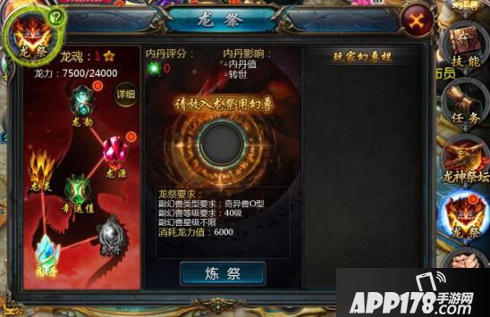 培养方式:将符合条件的幻兽放入中心圆框,并消耗一定龙力值即可进行炼祭。