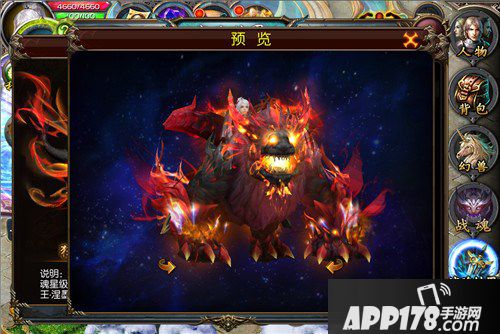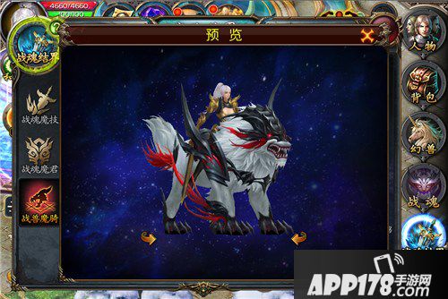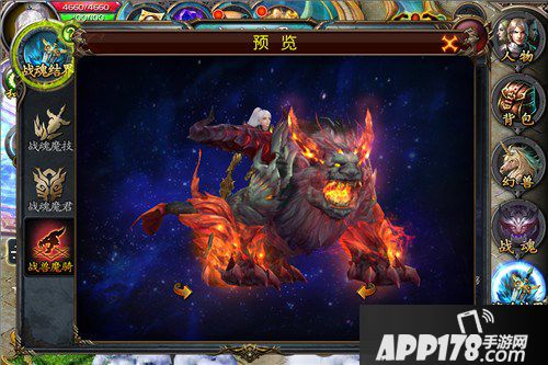 当战魂≥80星,即可自动获得技能“魔兽契约”,召唤狂战士专属骑宠——征服大地的“狂怒魔兽·萨坦”。