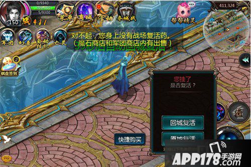 在军团地图内死亡,画面上将出现使用战场复活药的“快捷购买”提示。