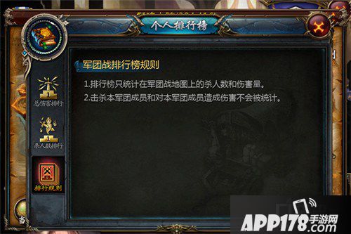 排行榜只统计在军团战地图上的杀人数和伤害量,击杀本军团成员或对本军团成员造成伤害,不会被统计进排行榜数据。