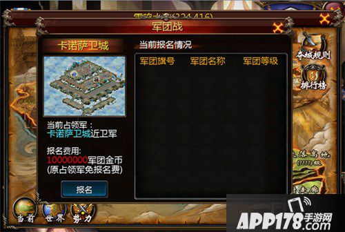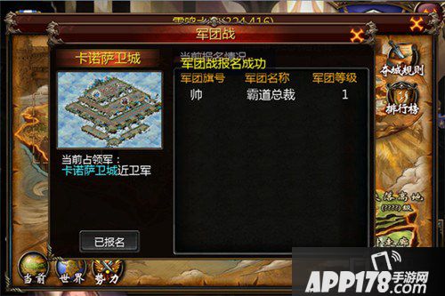 此时就算报名成功了。军团成员们只需等到争夺战开始时进入战场地图,按照军团战规则进行城市争夺即可。