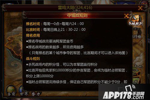 菜单—军团—内政管理—军团领地—夺城规则)