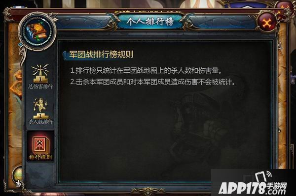 排行榜只统计在军团战地图上的杀人数和伤害量,击杀本军团成员或对本军团成员造成伤害,不会被统计进排行榜数据。